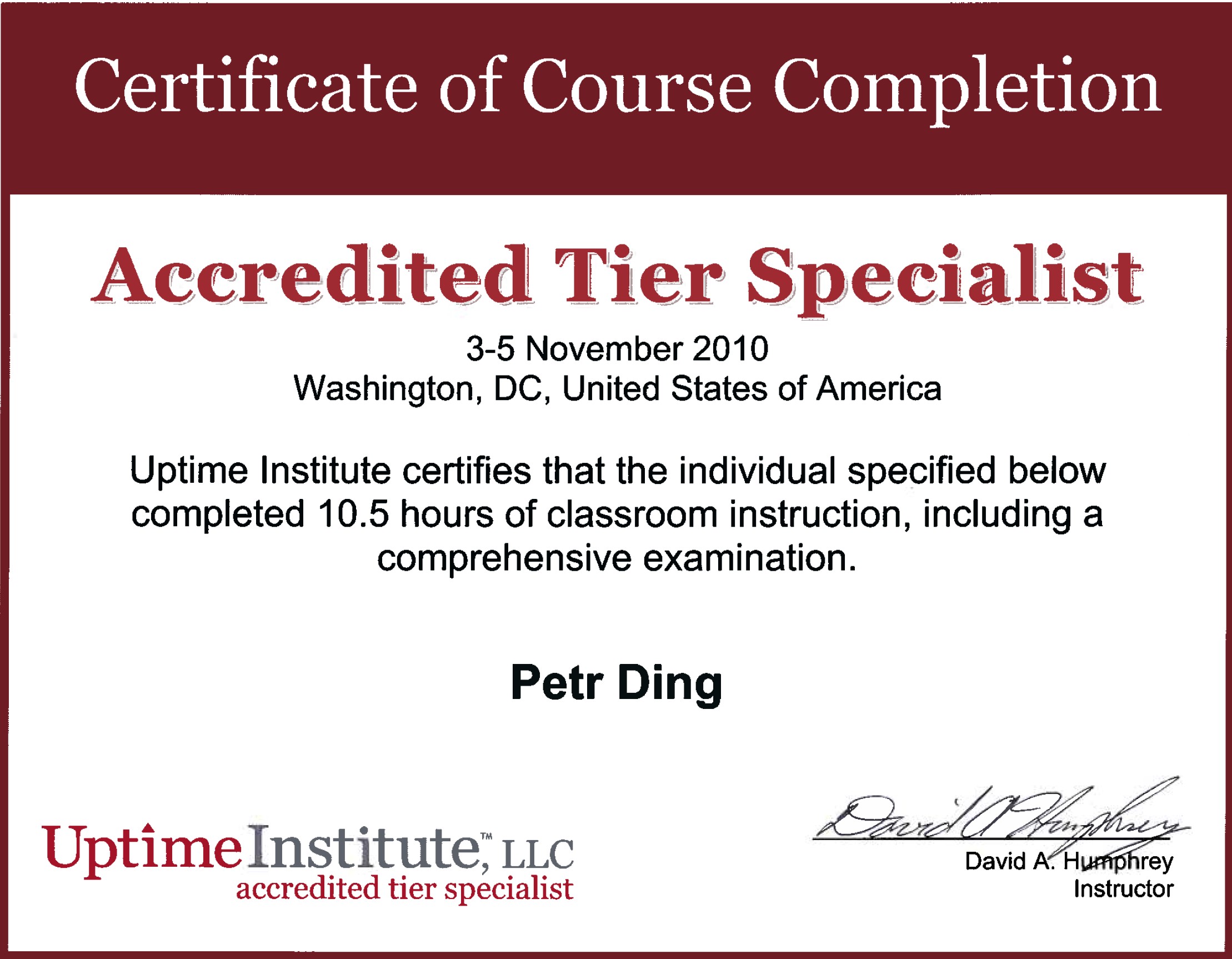 | ATS – Accredited Tier Specialist Course #103 | The Uptime Institute, USA |