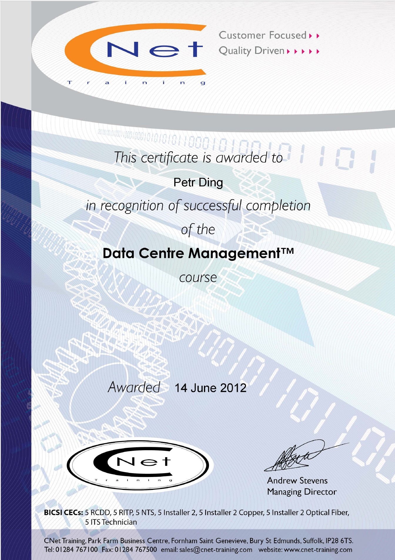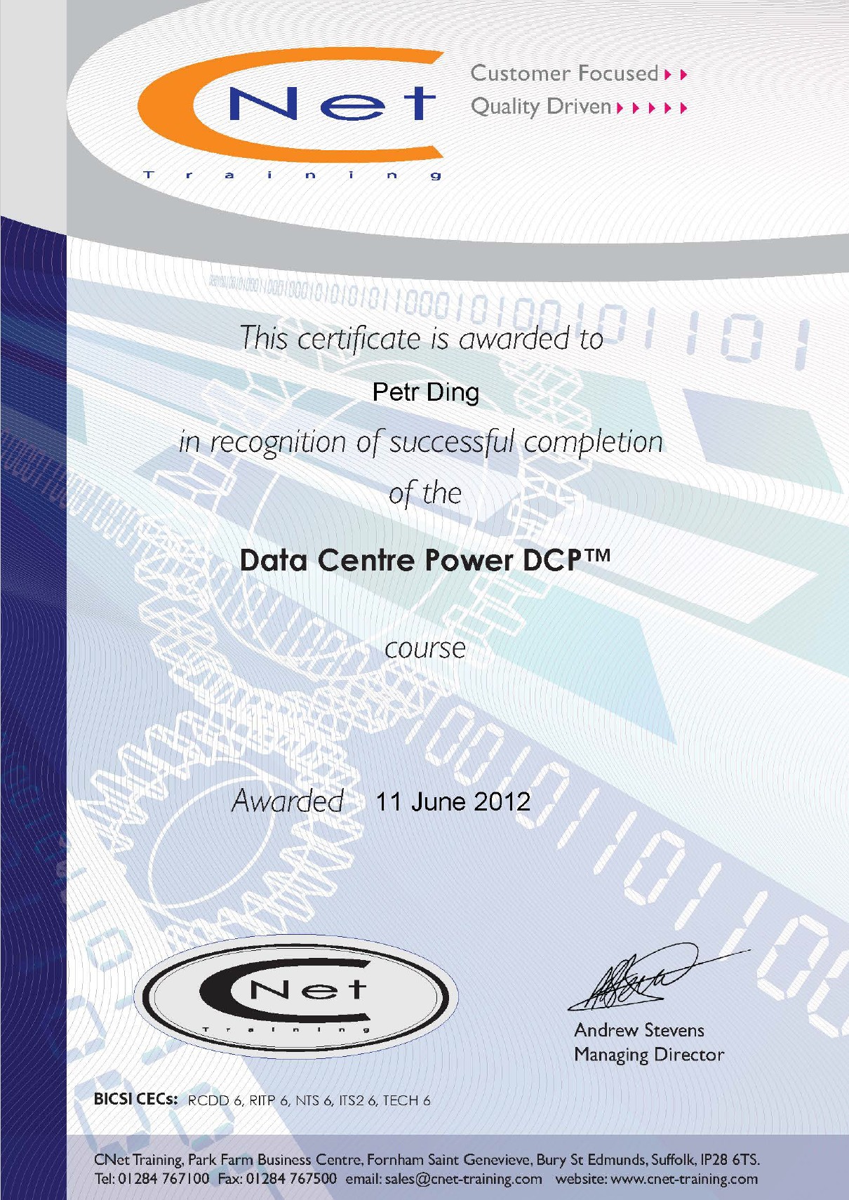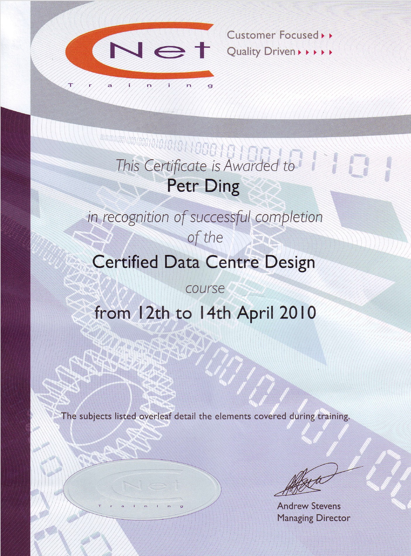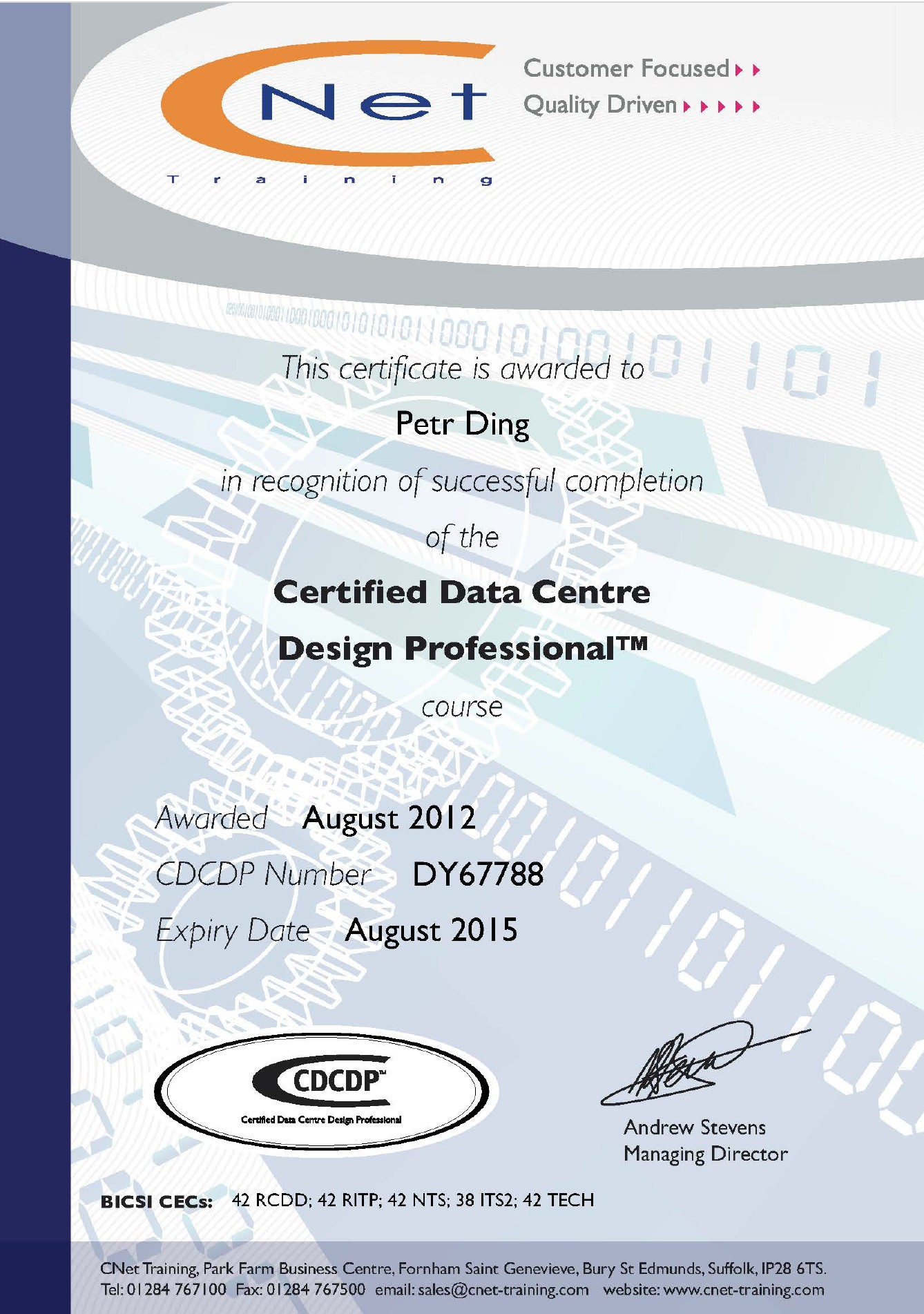 | Certified Data Centre Design Professional (CDCDP)® | C-NET training, Prague (expired) |