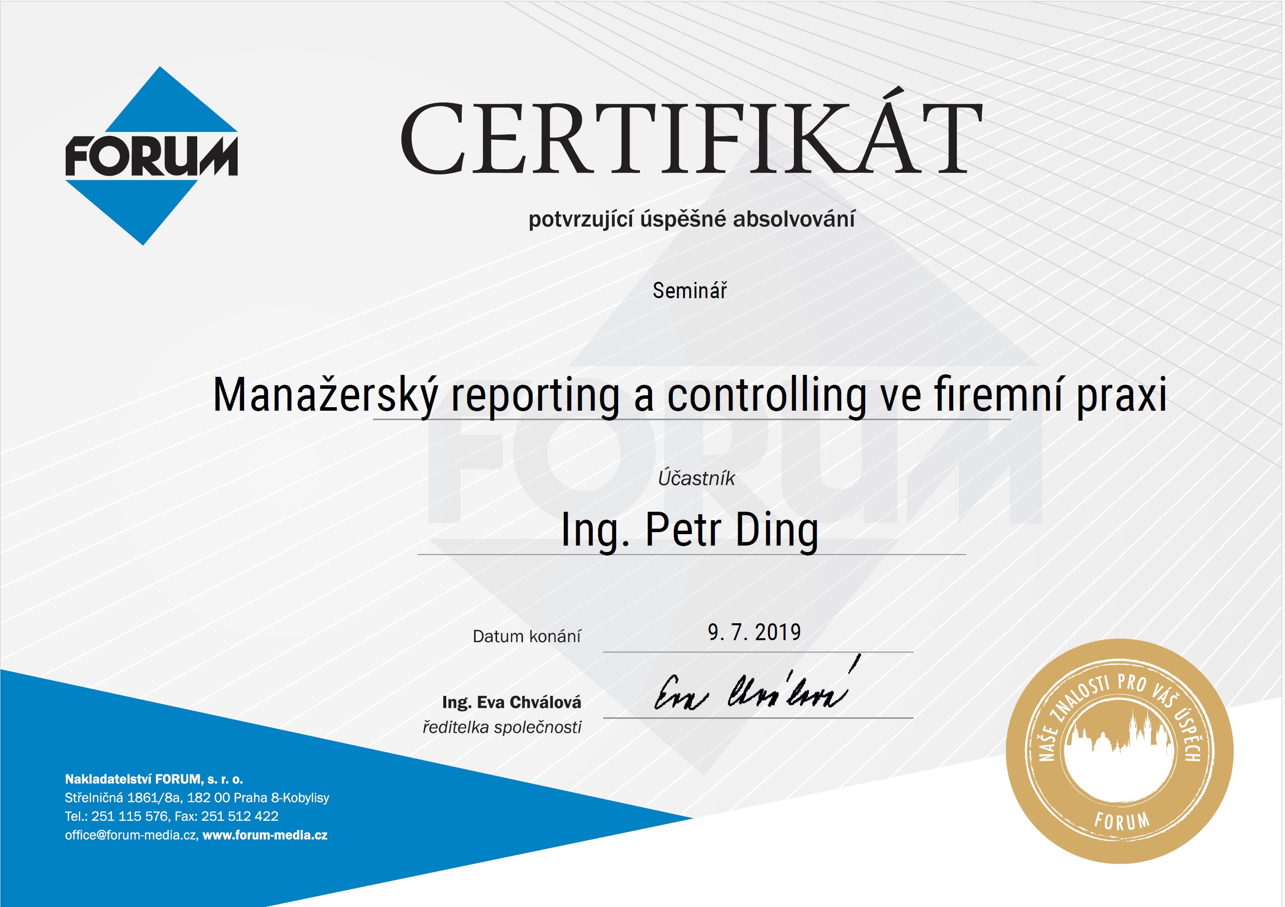| Managerial reporting and controlling in company practice | FORUM, Prague |