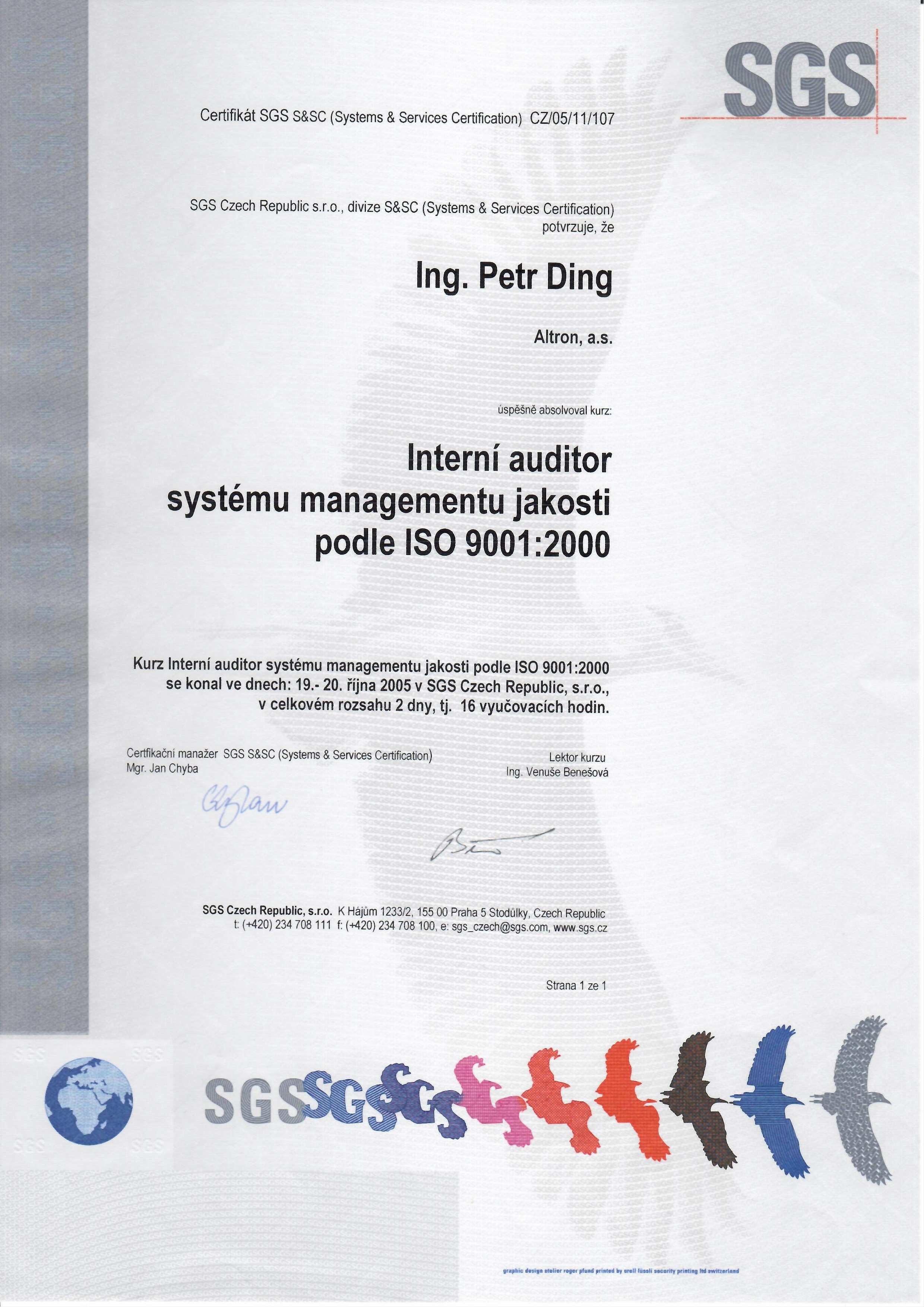 | Internal auditor ISO 9001/14001 | SGS Prague |